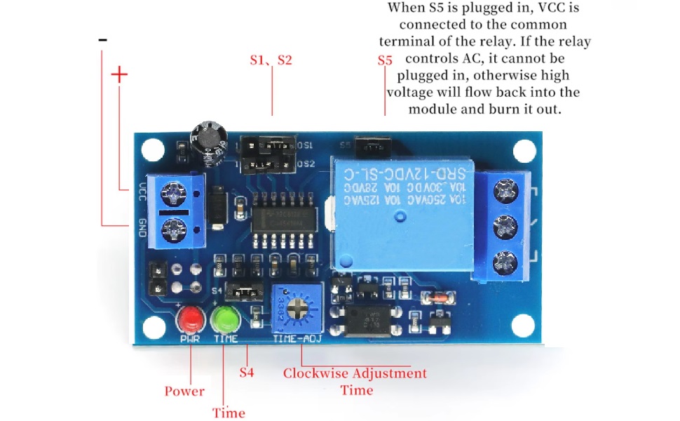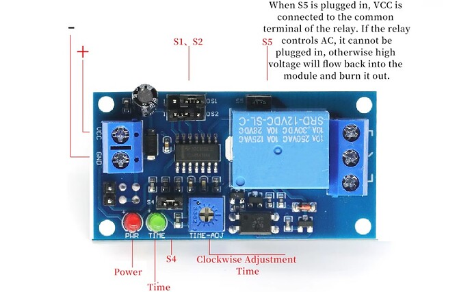 If the S5 jumper (Voltage passthrough switch) is plugged in, then the input voltage will be passed through to the common output pin, meaning that you don’t need to plug anything into it. However, if you want to use the board to switch some other circuit, you can remove the S5 jumper.