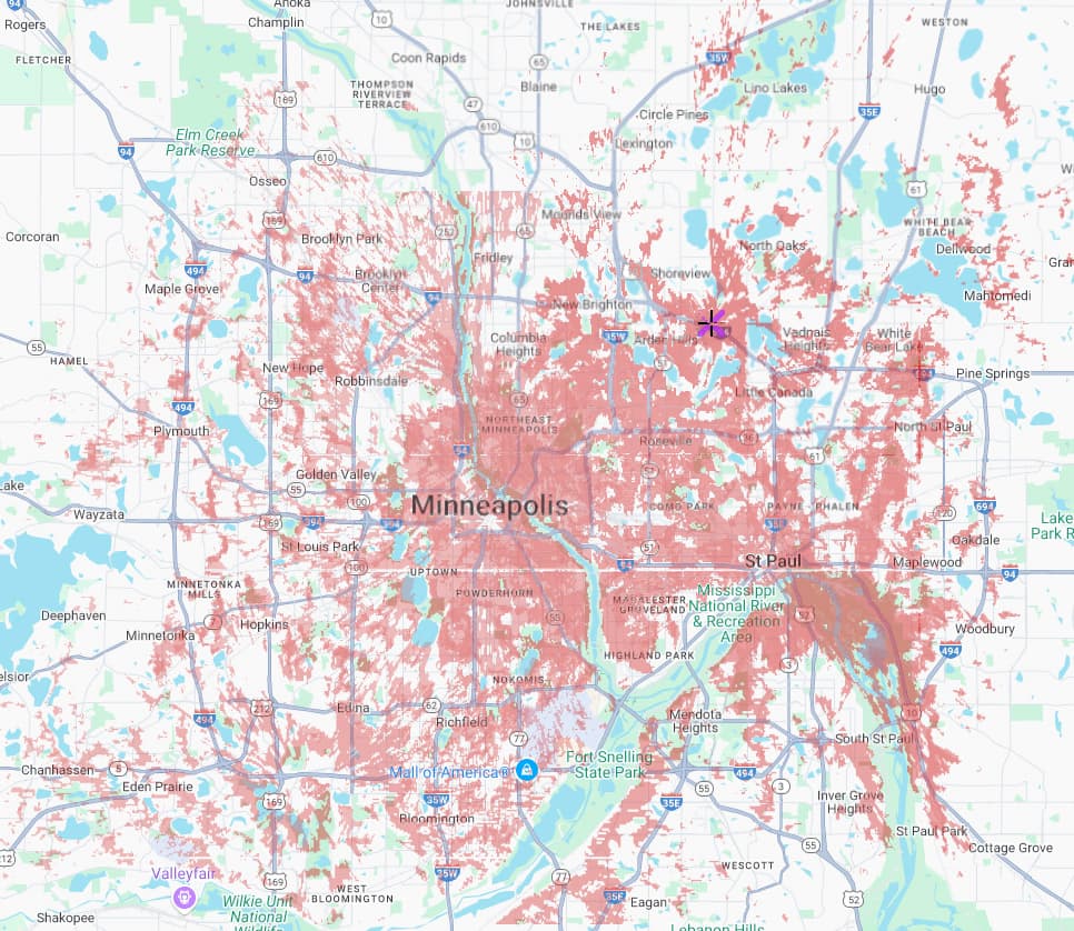 This (soon-to-be-working..this is just an image of theoretical coverage) map is made specifically to show somewhat realistic expectations of coverage provided by our network of infrastructure nodes.